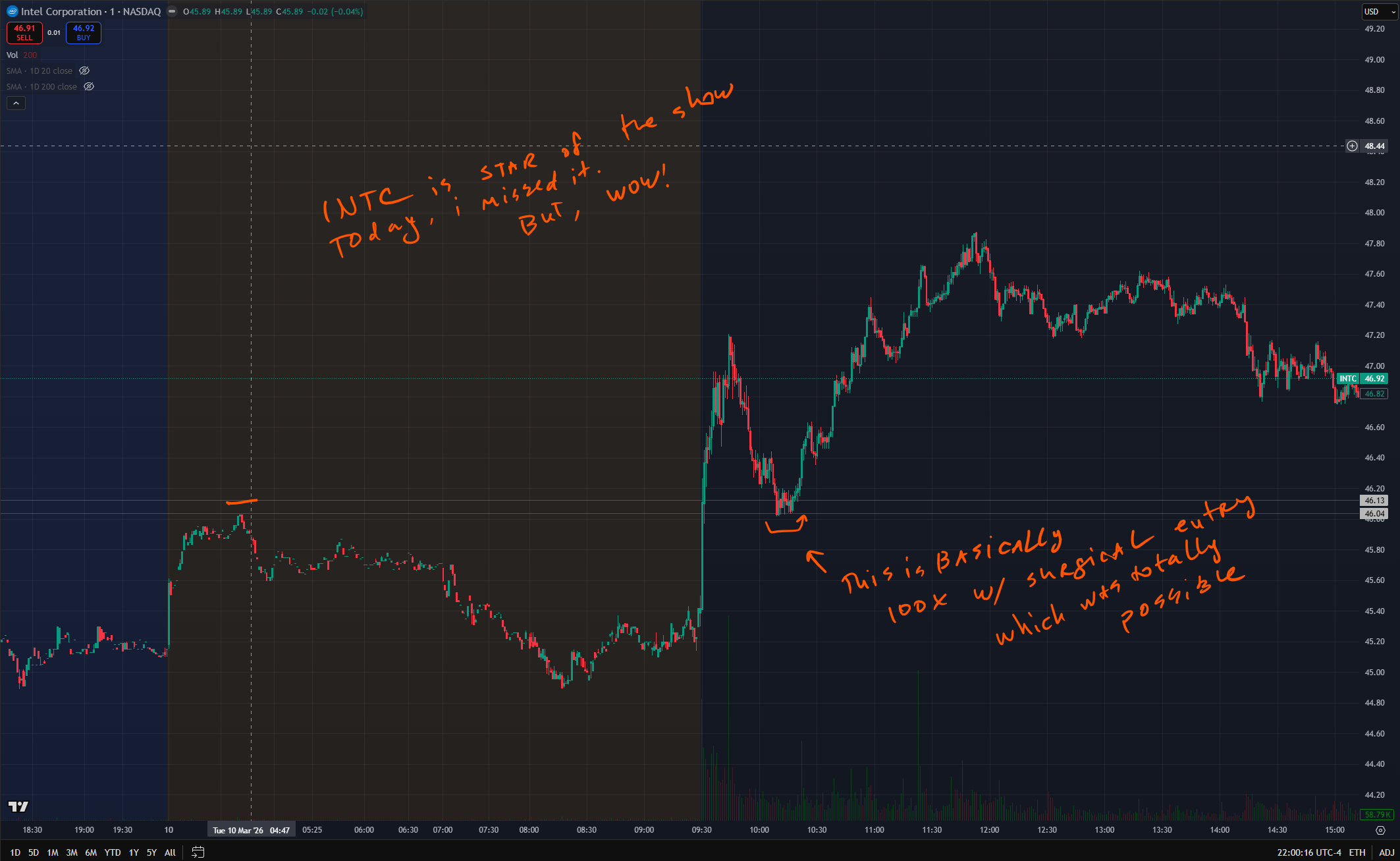 TSLA is not a beginner ILP trader. I don't think there is ever a clean precise setup on this instrument like there was on INTC above. Share