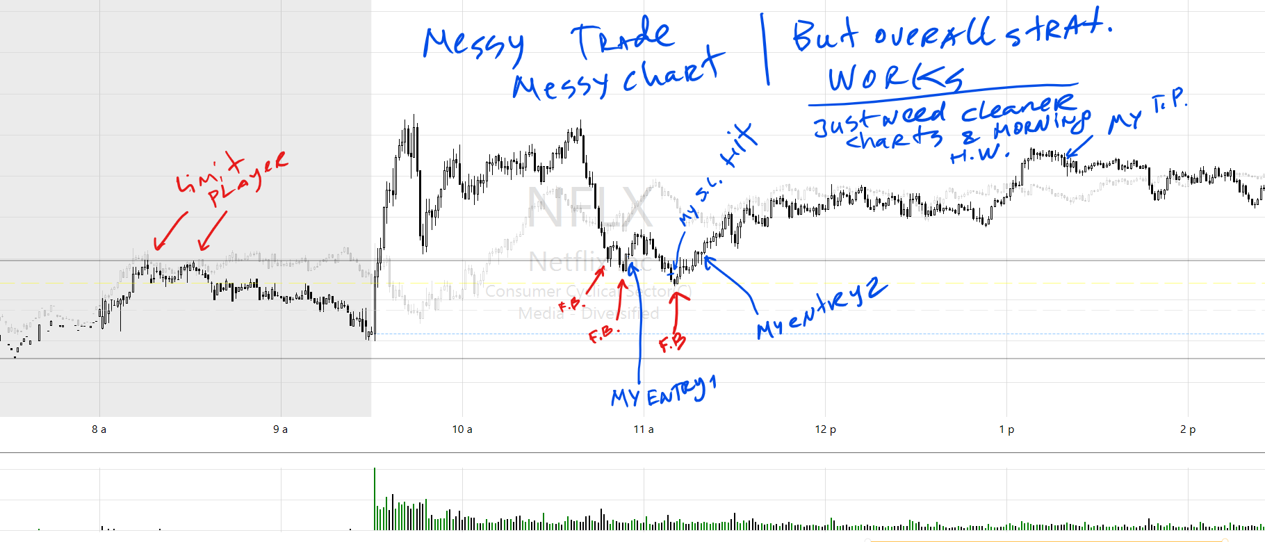 Putting recent strategy into play, with limited morning homework, I ended up with a decent trade.There were much cleaner setups, I just didn't have time to find them. More on this later. Share
