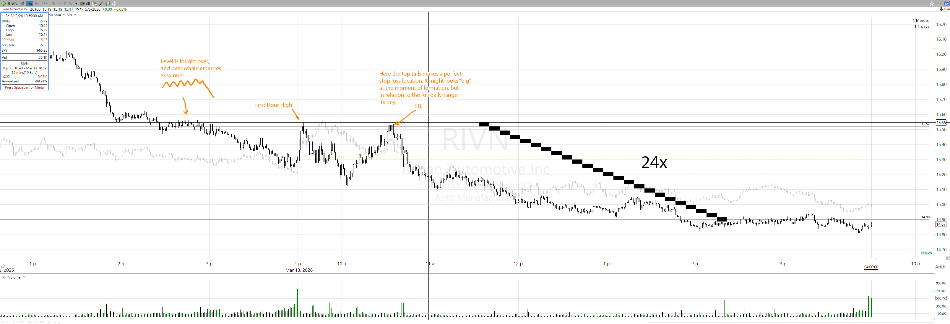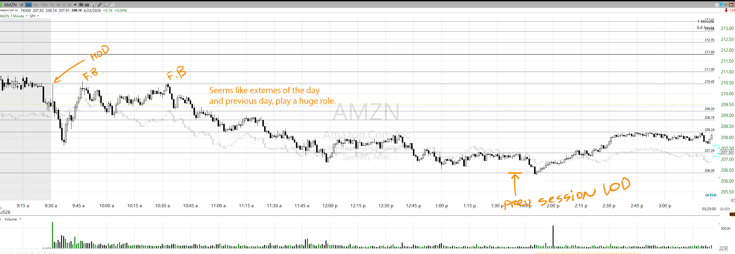 - HOD, LOD, prev. HOD, LOD or pre-market Extremes are all super important, and should be looked at actively when trading F.B.
