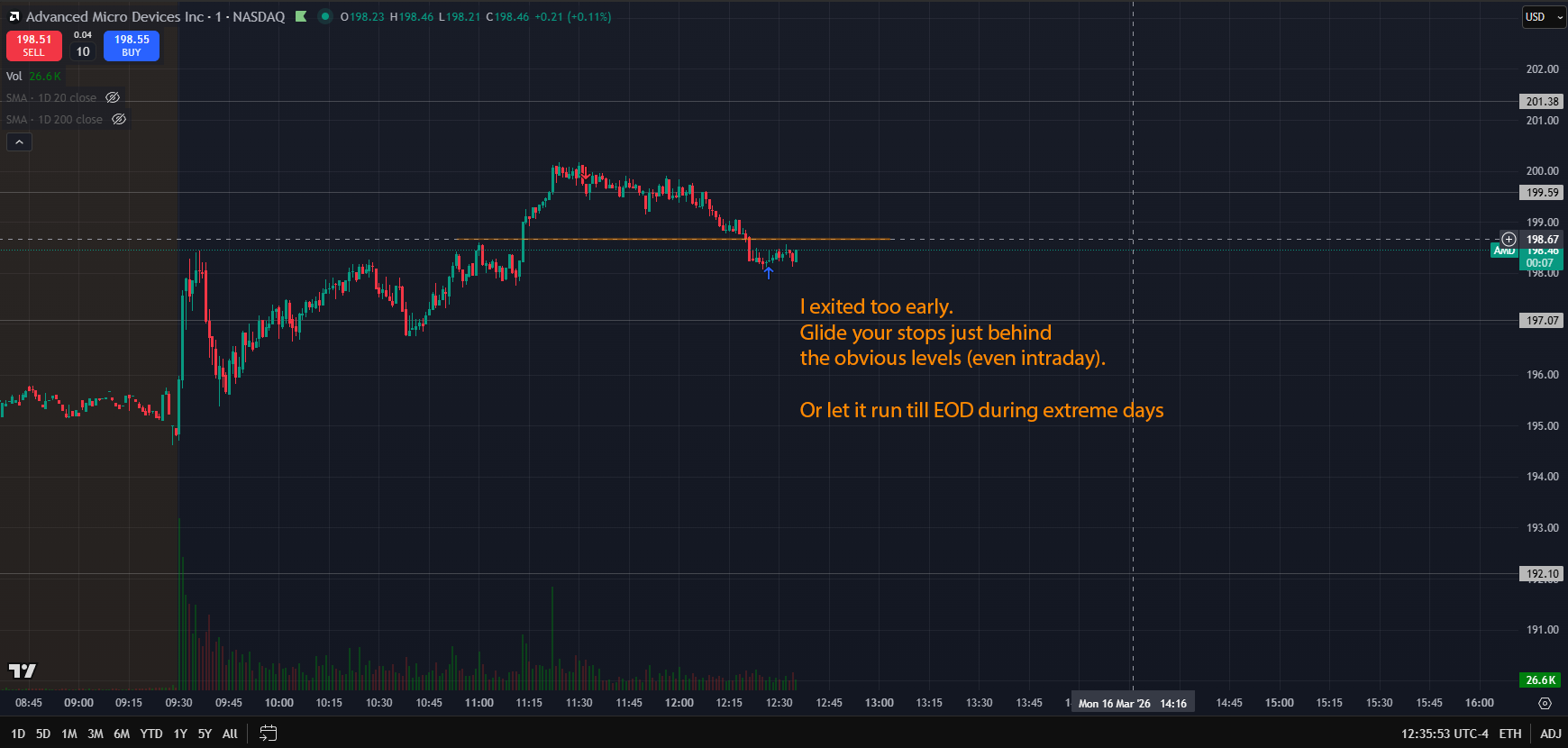 I know the preferred exit plan is to have set Takes, but I want to try some kind of dynamic system. Something based on contextual environment. So I will be placing stops behind resistances that look like conditions for reversal.