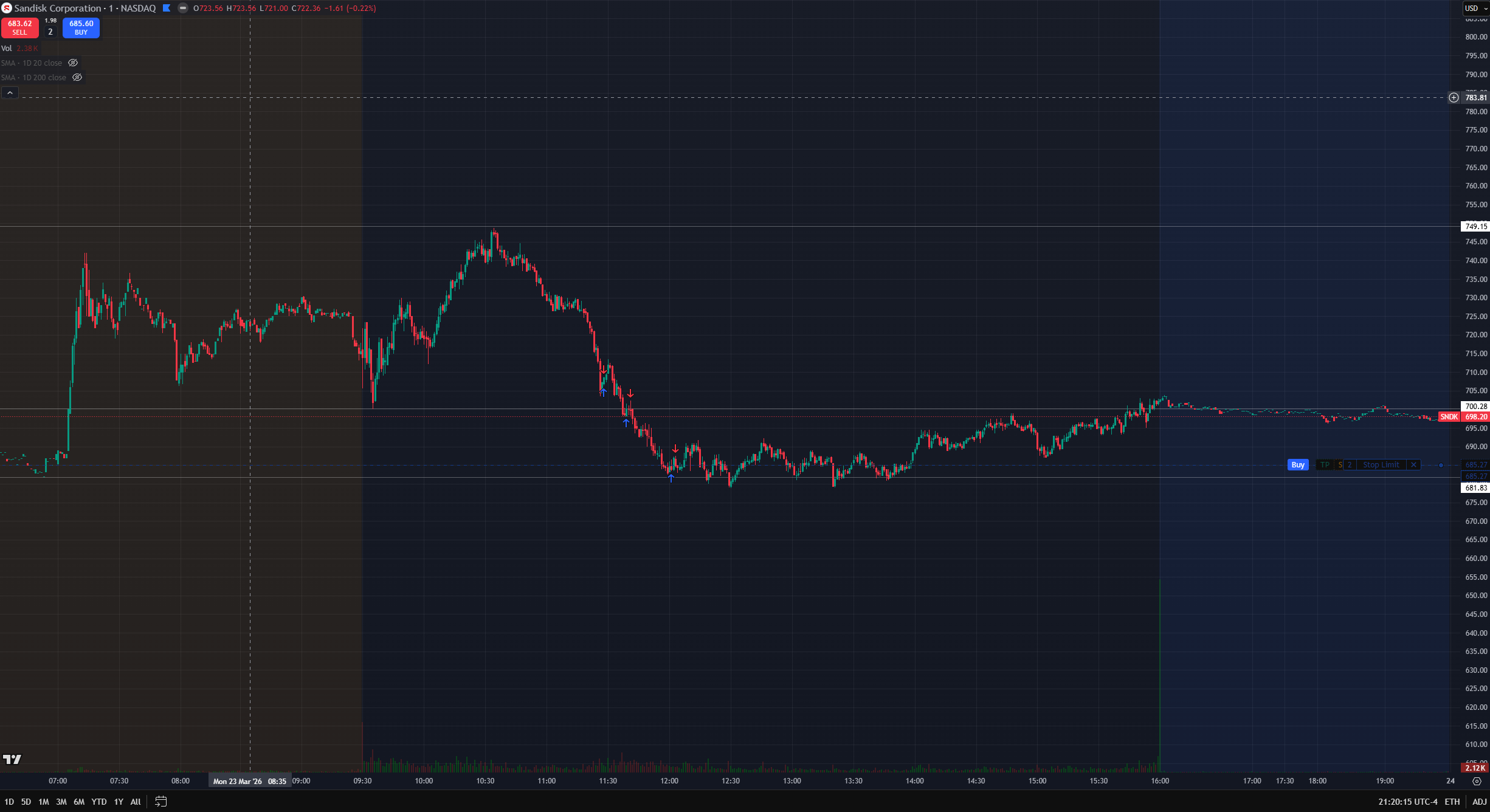 This was a weird day. Very unsure market. I missed the morning due to sleeping in, and didn't really get anything working after. SNDK - 3 0 trades. Share