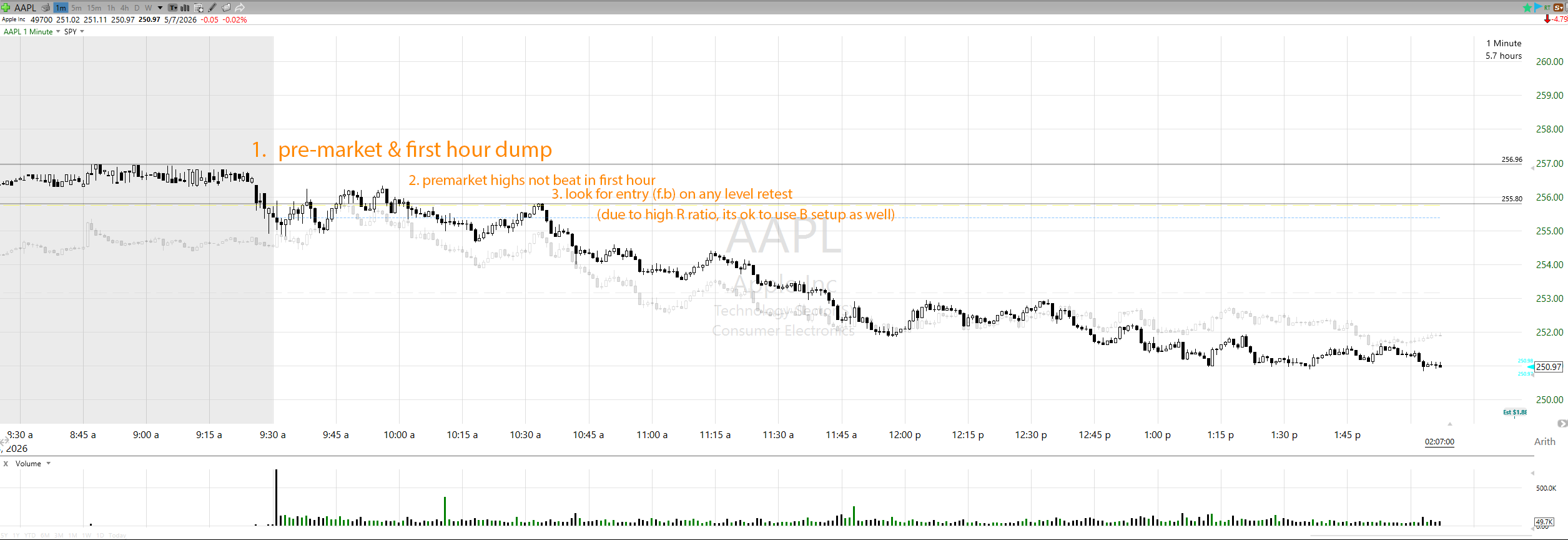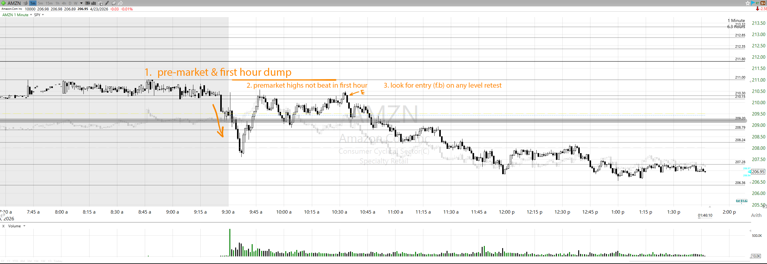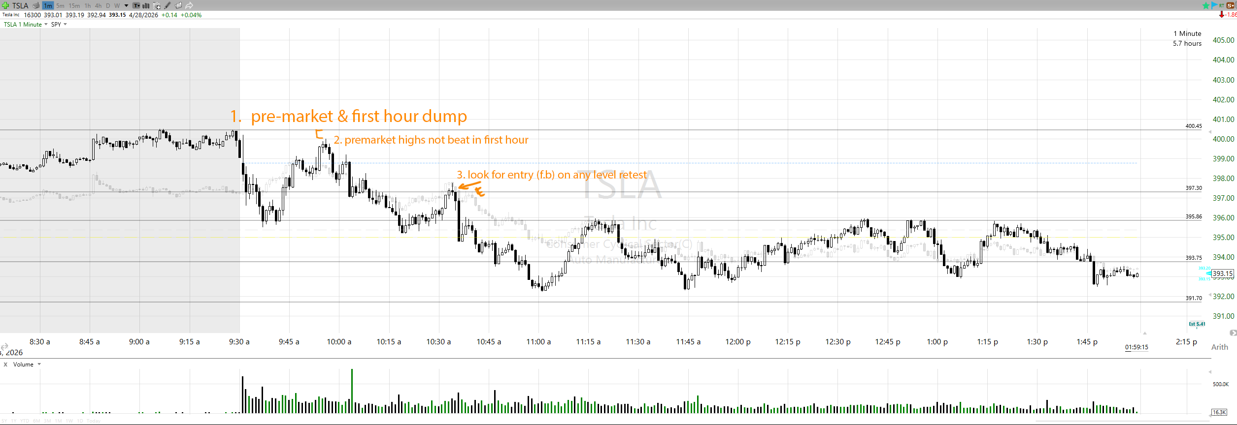 - The instrument must fail to beat pre-market high in first hour. So 9:30 to 10:30.