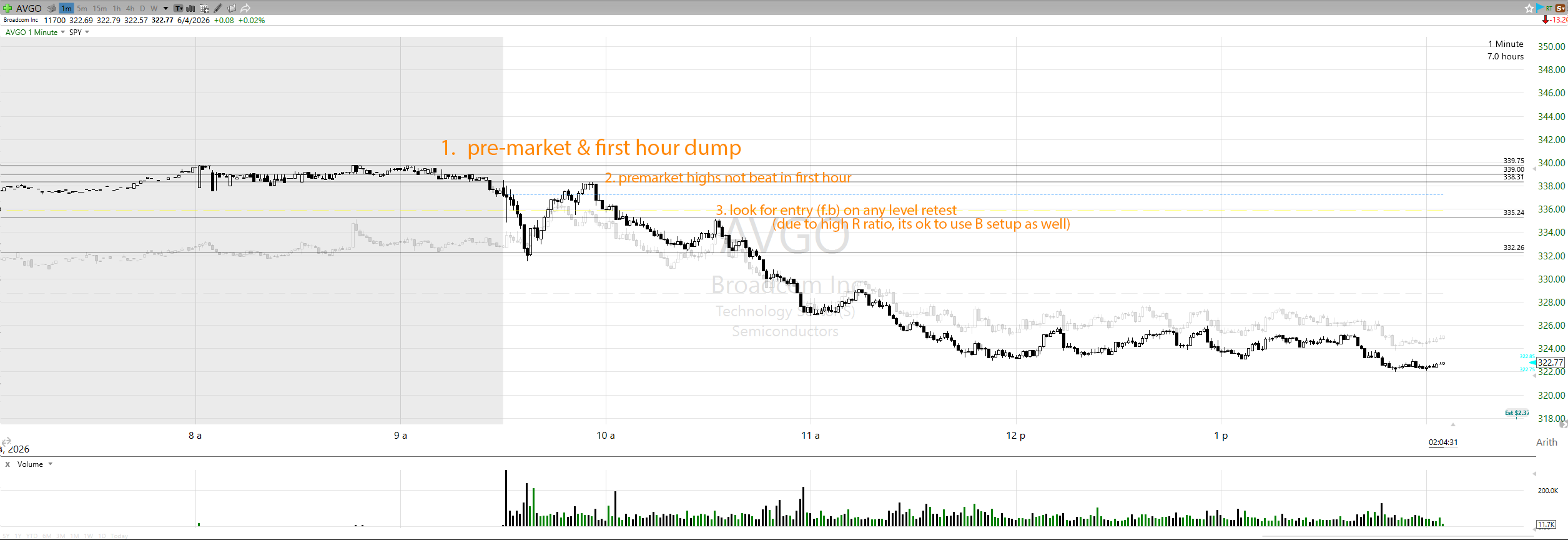 - There needs to be a level to set F.B. trade against (level is probably going to be pre-market, but previous day is ok).