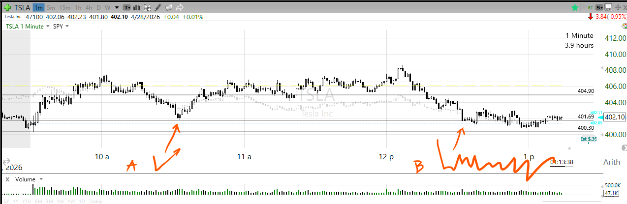 Here is same example, notice the first test: clean, sharp. Then followed by challenged level. A: Clean, B: Not idea reaction to level, followed by a mess.