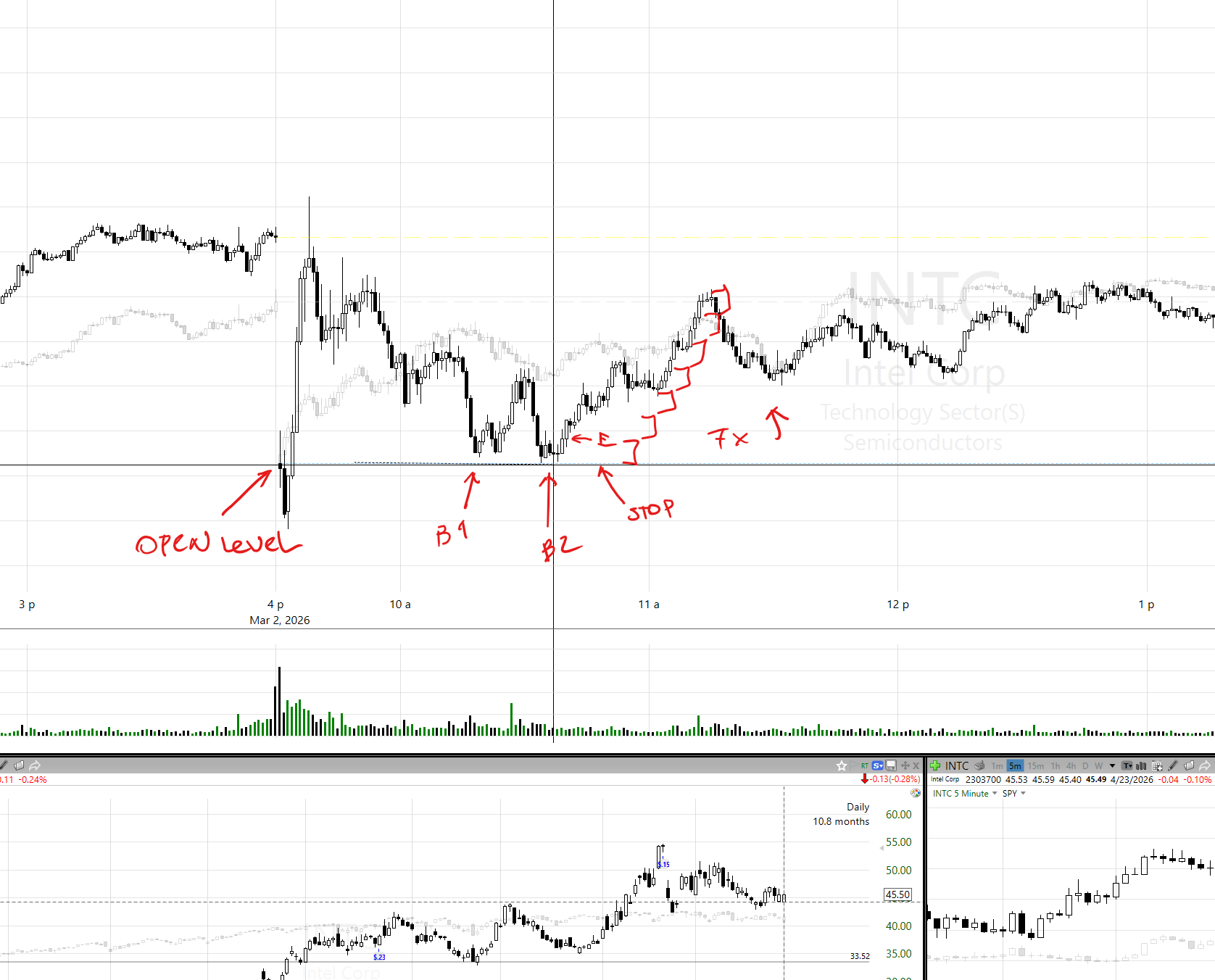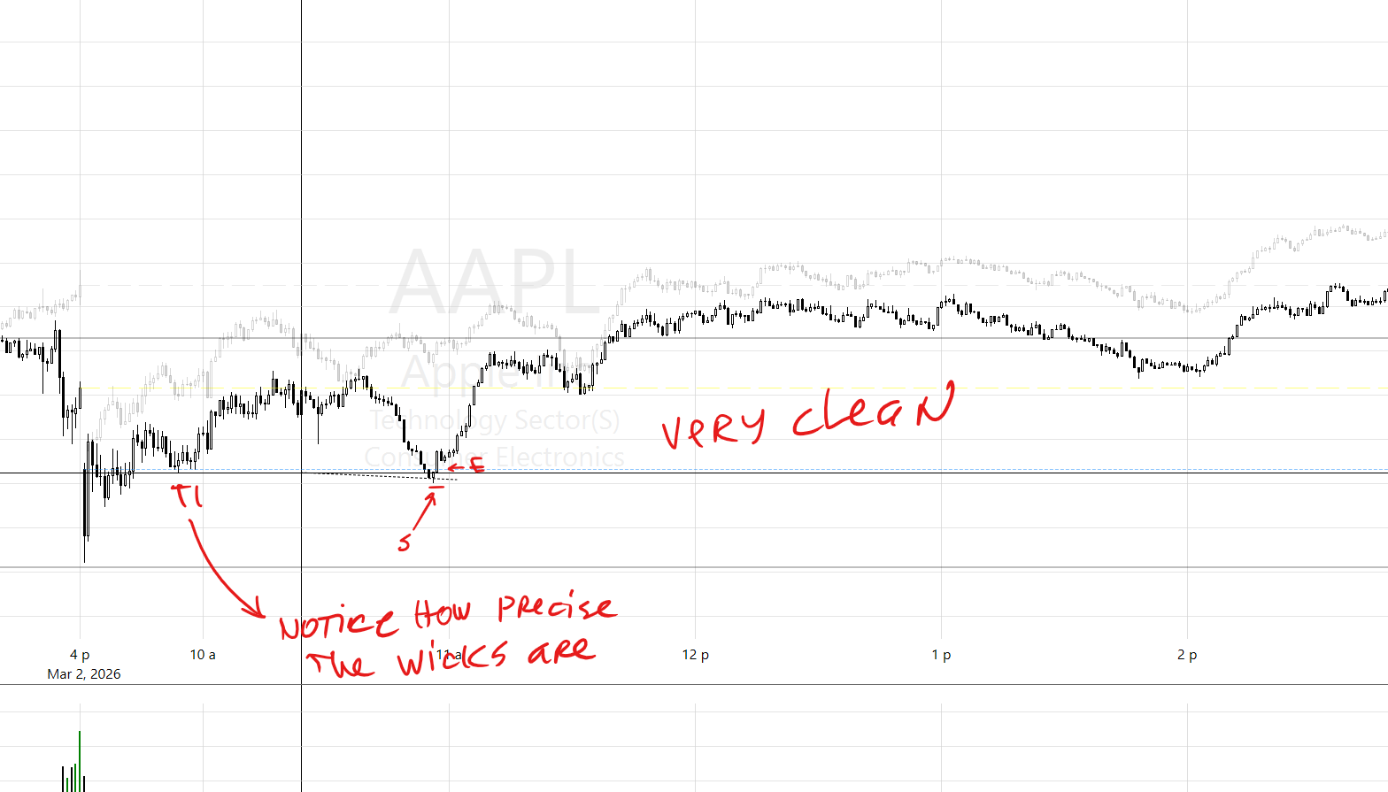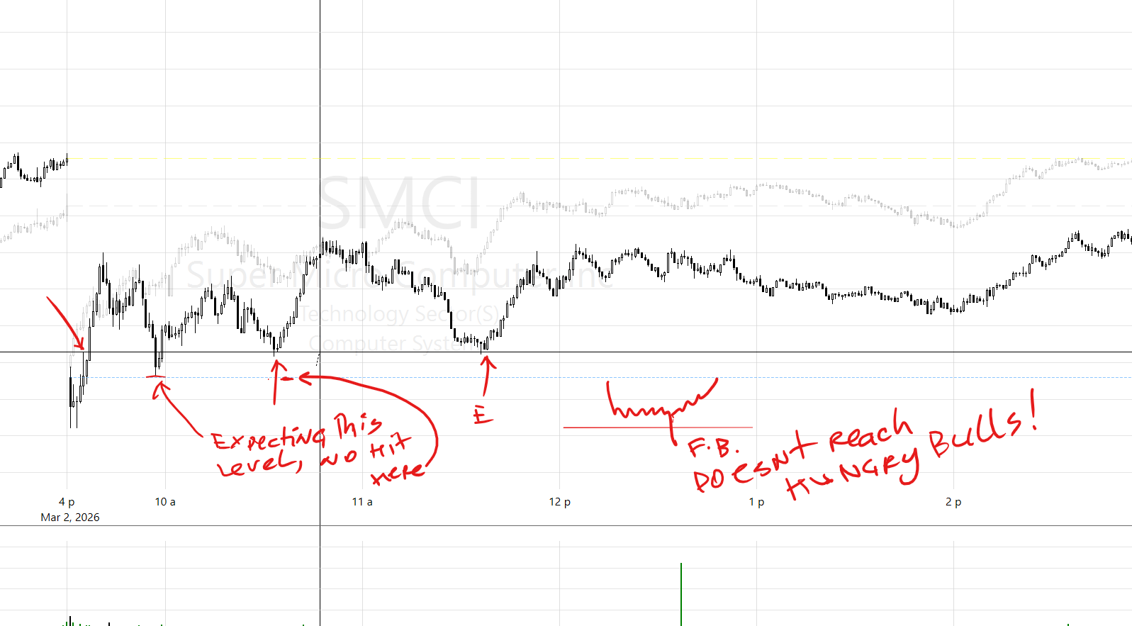 Here trader plays against any intraday levels that might present themselves in an instrument of large volumes (AAPL, SMCI etc).