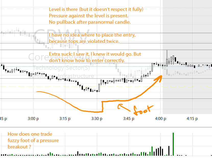 I saw this coming 10 minutes before it happened, and still didn't enter because I have no idea how to enter on break when level is constantly violated.Should I enter on the other side of the foot? (bottom of the pressure channel?) Share
